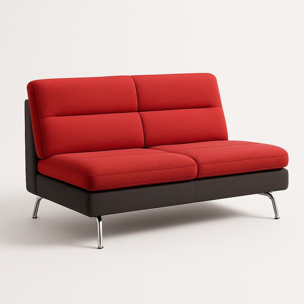 Ce canapé 2 places présente un design avec une assise épurée et un dossier en tissu textile rouge vif et une base en tissu noir. La structure est soutenue par des pieds en métal argenté. Le rembourrage offre un confort optimal grâce à son rembourrage en mousse. Les dimensions approximatives sont de 160 cm de longueur, 85 cm de profondeur et 90 cm de hauteur.