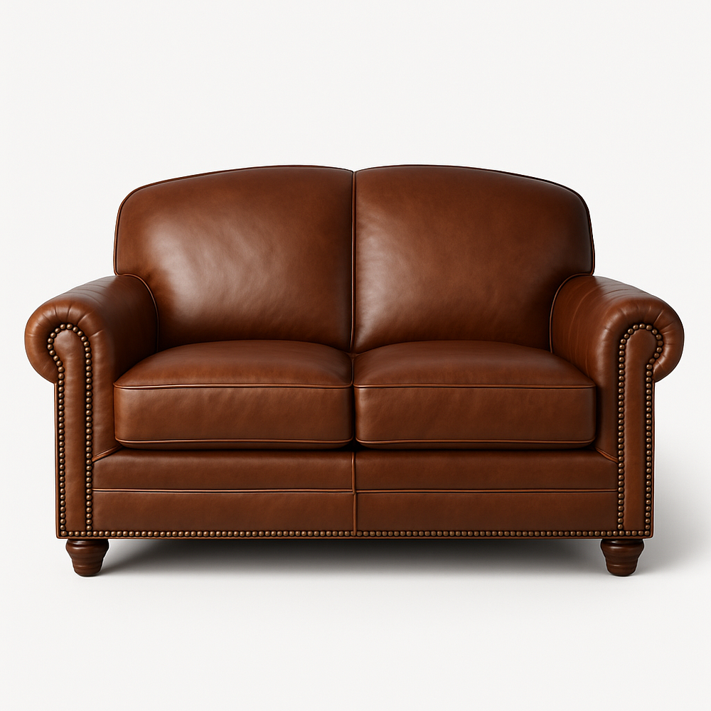 Canapé deux places cuir marron classique