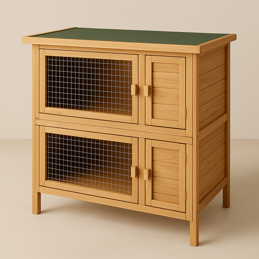 Clapier à deux niveaux bois Marron Rectangulaire Abri à lapin avec toit vert